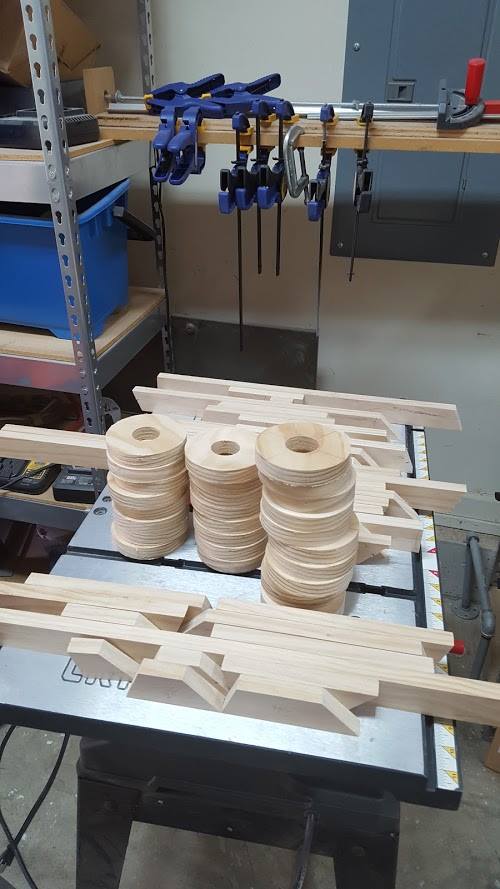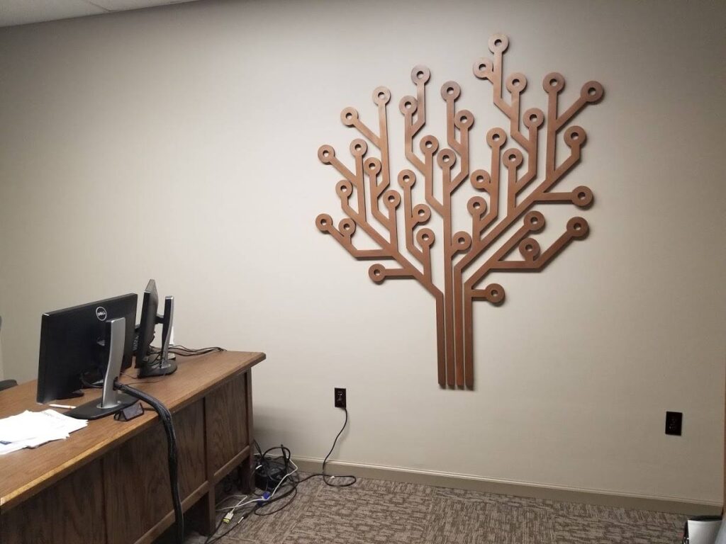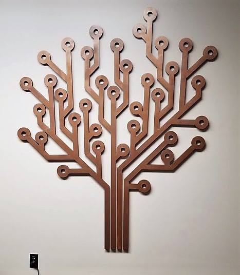 The latest addition is the circuit tree that is in my office. I made this from pine lumber and painted it to look like metal. Cutting circles on a table saw was the biggest challenge. I had the idea to made something along these lines and while digging around I found the logo for the Arkin Laboratory at UC Berkeley. It was exactly what I wanted. While I shamelessly copied the look, I did want to give them credit.