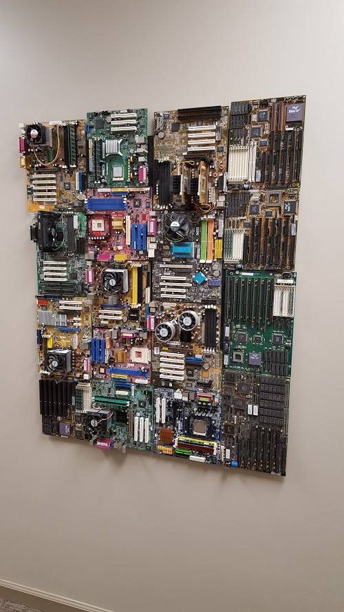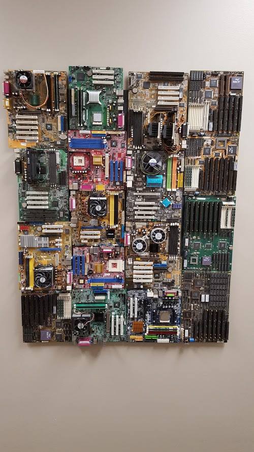 The motherboard board is a collection of motherboards from most of our personal stockpiles of antiqued technology that cover the spectrum of motherboards from the very earliest personal computers to the more recent, colorful flavors.